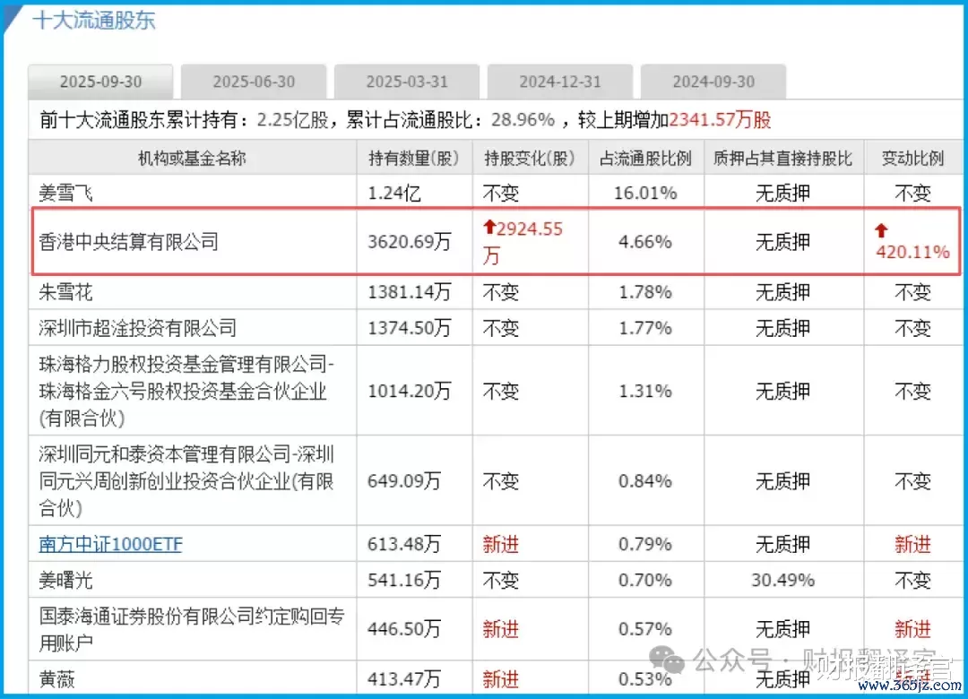 但卷宗附注却写道:北向资金(香港中央结算有限公司)持仓暴增420.11%。