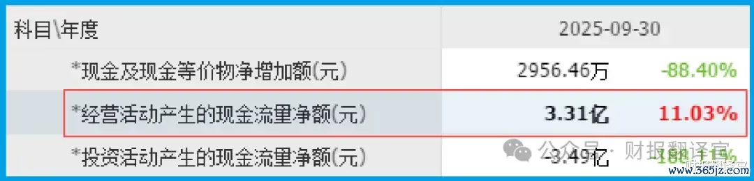 公司三季度销售商品、提供劳务收到的现金”净额达到3.31亿元,同比增长11.03%,且高于净利润。