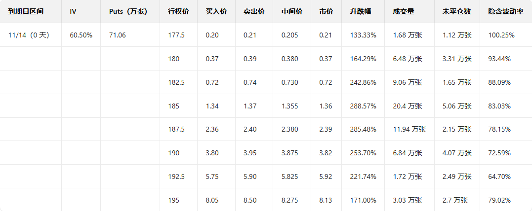 观察本周五到期的put单,多张涨幅超2倍。