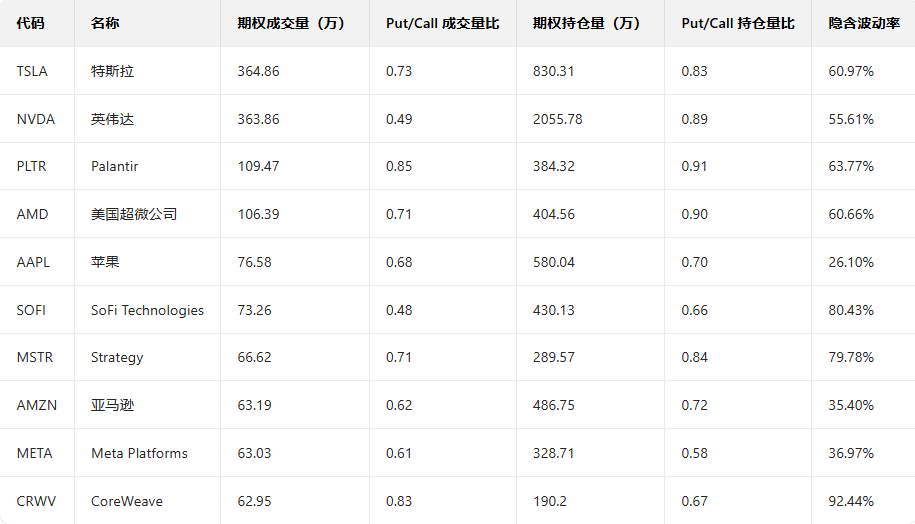 美股期权成交量排行榜前十