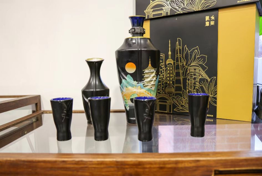 值得一提的是,由金山艺术黑陶研究院设计团队及枫泾古镇旅游公司共同创作完成的上海之韵系列茶具、酒具,还获得了2024年“老凤祥杯”上海礼物设计大赛“年度新品”奖,并入选2024“上海礼物”商品名单。今年9月22日,研究院创作的新作品《艺术家手工黑陶茶道茶具》荣获“2025金山特色伴手礼”金榜。